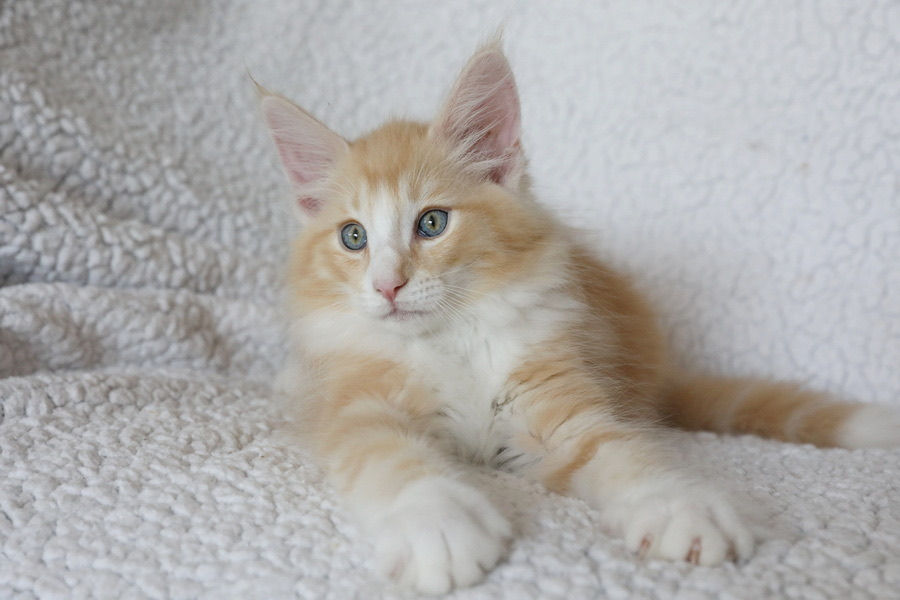 Titran's Quinton came to the cattery in January from Titran's cattery in the Netherlands, in partnership with Prairie Sky cattery in Canada. He is a gorgous red classic tabby with white. He has the Polaris white tail tip as well! Titran's has been perfecting their breeding program for over 20 years. Quinton has a perfect triangular face, exquisite lynx tipped ears, lovely straight profile, a crisp fur texture with a fantastic undercoat, and that wild look about him that is highly desired in the Norwegian Forest Cat. He is a big strong cat already at just 10 months old. He is going to be a big boy! His temperament is outstanding, he takes to new situations very well and displays a fun loving outgoing personality. We look forward to showing him during the 2024-2025 show season and hope to see his first babies in 2025.